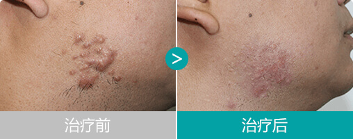 2. 病症:下颌因痤疮引起的疤痕疙瘩