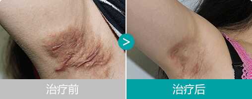 孙女士,做腋臭手术留下的疤痕,整个腋下都是疤痕,色沉明显,夏天穿衣服很尴尬,通过PLASMA离子束治疗后,腋下疤痕...... [详细]