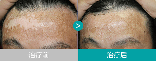 张先生额部幼年时期开水烫伤遗留白斑,随着治疗,白斑疤痕完全消褪,黑色素细胞生长的很好,患处表面色素沉着随时间...... [详细]